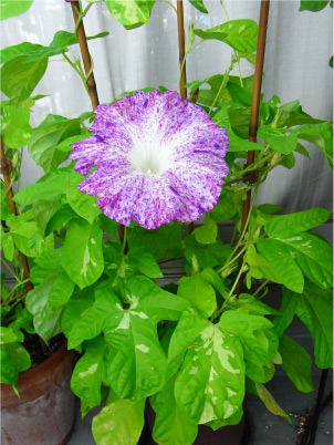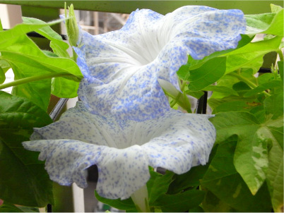 いつも素敵な朝顔、見せてもらっています。 名前が難しい変化朝顔、Q1089の形も珍しくて、初めて見ました。色が素敵ですね。 白の松島も綺麗ですね~~、平安の泉の紫もいいですね~~、 初霜と輝55の霜降りの模様が綺麗でびっくり、 弁慶の濃い紫色がシックだし、鳴海潟のブルーが爽やかです。 私の表現力が乏しいので、綺麗、素敵!でしか言い表せませんが、 本当に、 ’素敵’ です。 それと、こんなにも朝顔に対しての思いが深いcloverさんに脱帽です。 いつも綺麗なお花を有難うございます。 Re:素敵です~~