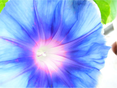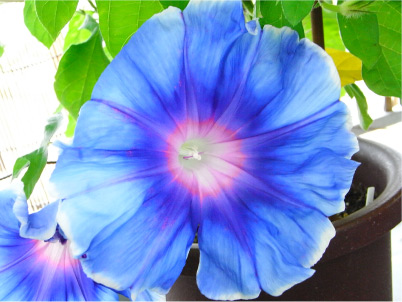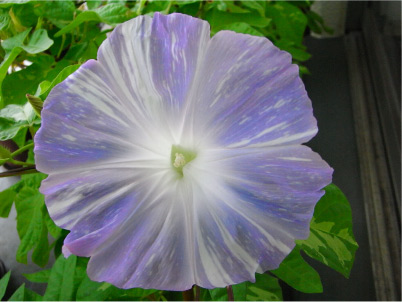 一部花びらが切れてしまったのは残念ですが、大きめのいつもと違った「碧竜」の花が咲きました。 これまたなんと清々しい色合いなんでしょう。この朝顔は本当にたくさんの模様を見せてくれて毎日とても楽しみです。